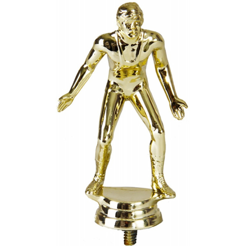 Цвет: золото, материал: пластик. Вид спорта: борьба. Фигурка выполнена в виде борца, согнувшегося и готового к нападению. Ноги согнуты в коленях и расставлены на ширине плеч. Борец сконцентрировано смотрит на свою цель, не отводя взгляда. Высота, см: 12.1. Фигурку можно закрепить на цоколь, постамент или кубок.