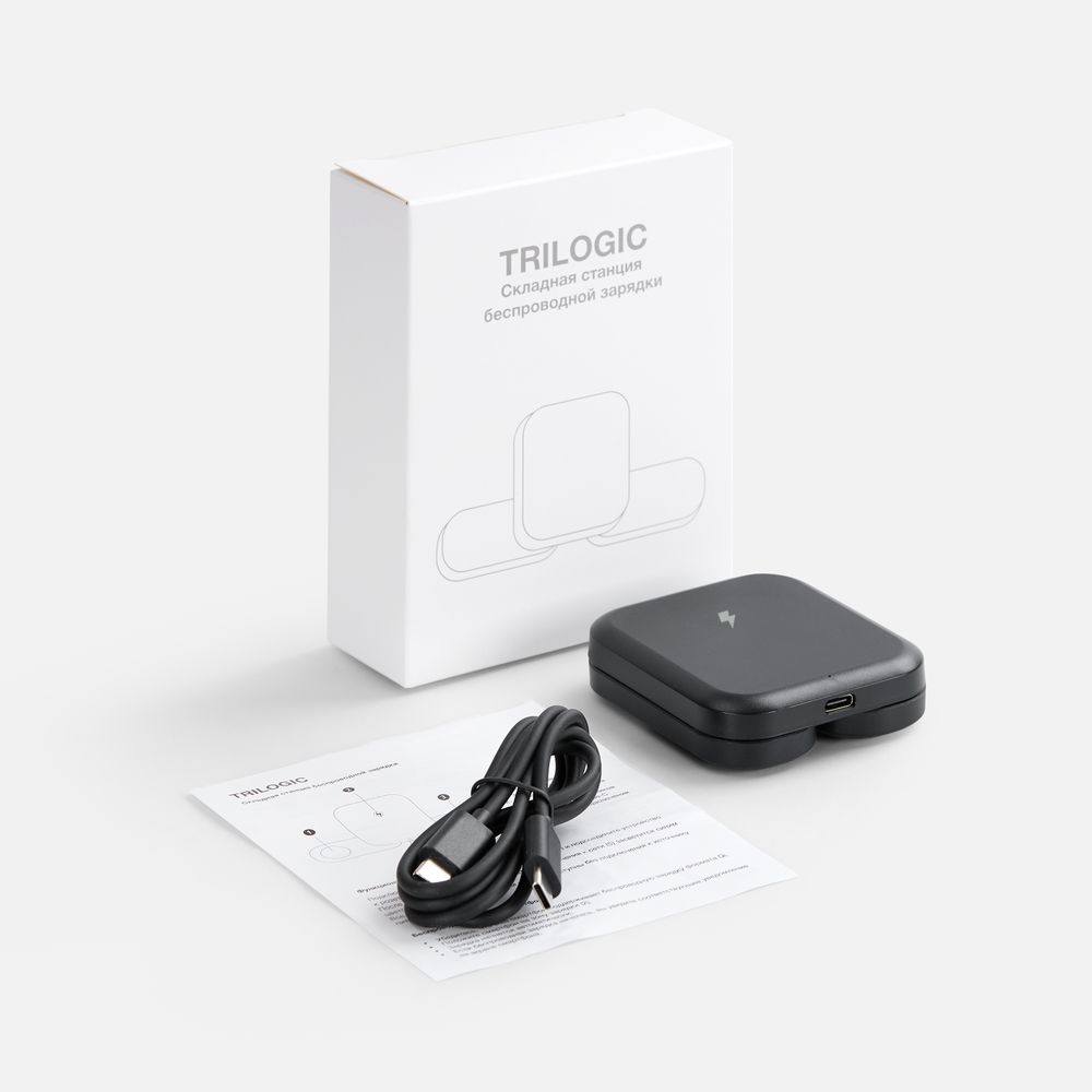 Складная станция беспроводной зарядки Trilogic, черная