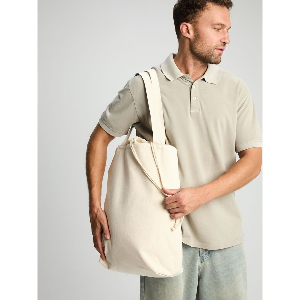 Сумка для покупок, закрывающаяся на утяжку со шнурком.
